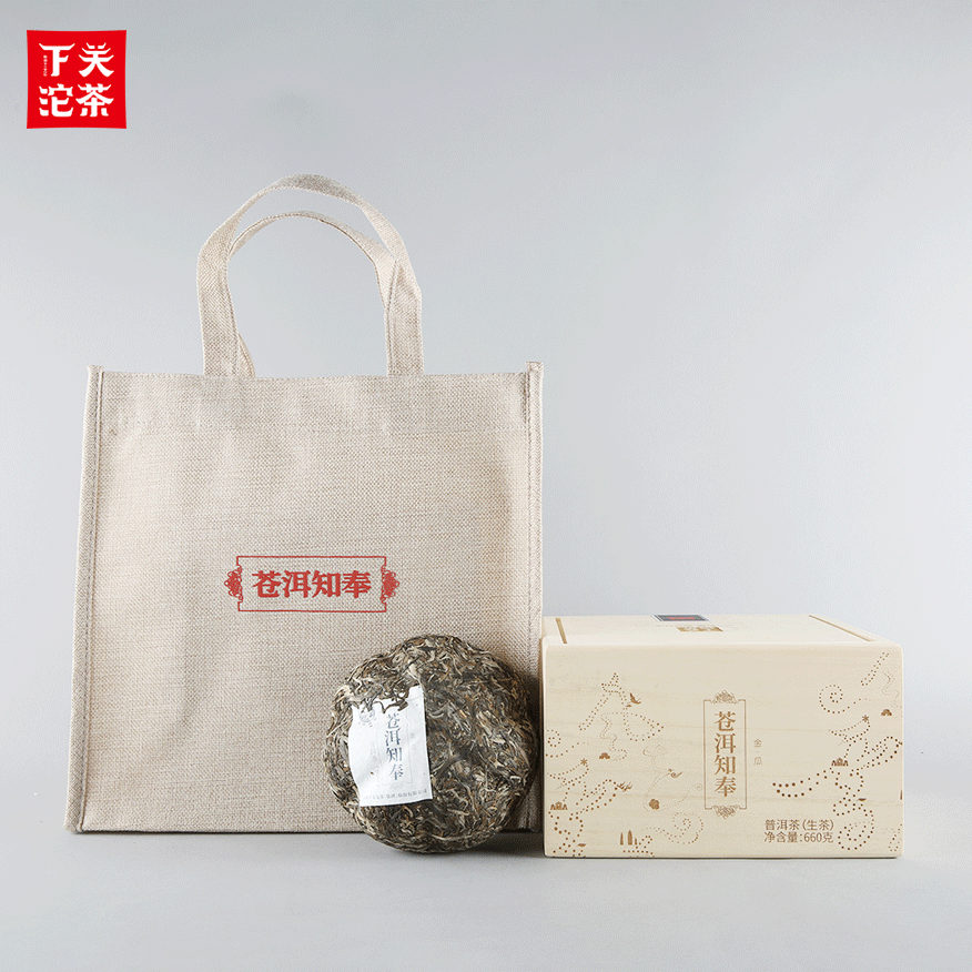 660克布袋木盒裝蒼洱知奉金瓜茶 普洱茶(生茶)2019