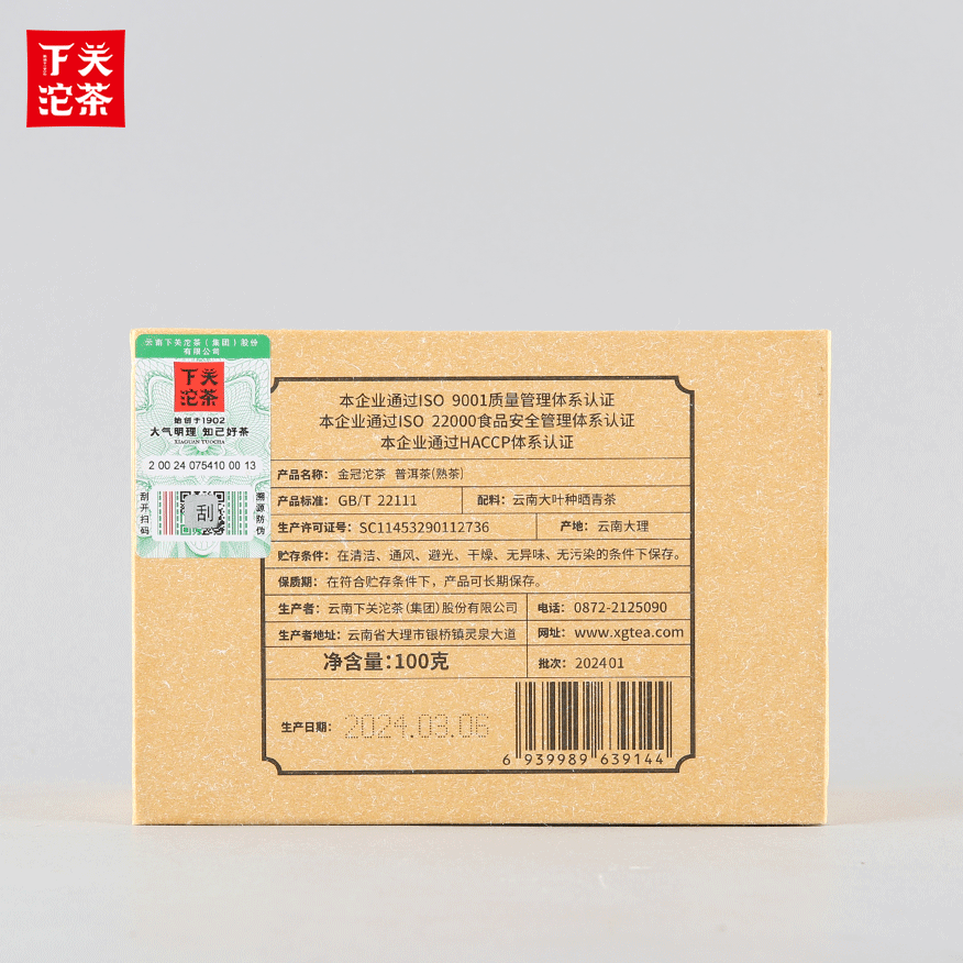 100克單盒裝金冠沱茶 普洱茶(熟茶)2024