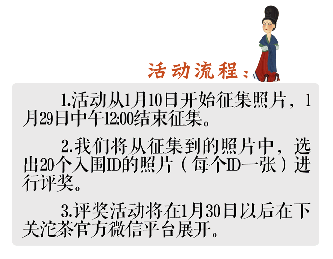 除了參與官方微信活動外,您還可以關注下關沱茶官方微博,在2016年1月10日――29日照片征集活動期間,轉發置頂微博@3位好友且@下關沱茶官博,轉發微博就可以參與微博抽獎活動,我們將在期間參與微博轉發的茶友中抽取10名幸運茶友,贈送公司2016年新品“品格”品鑒裝精美茶禮1份。